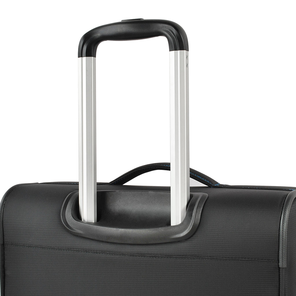 Le Poignée Télescopique en tant que pièce de rechange se compose de la poignée de traction sur le dessus, des deux tubes et du support qui connecte la poignée à la coque.