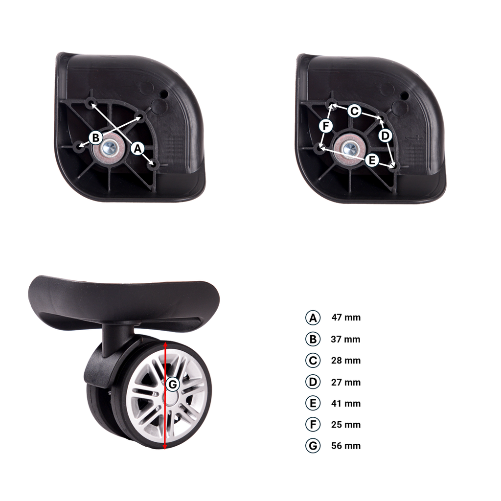 Pour maintenir une hauteur uniforme et prévenir une usure accrue, il est recommandé de remplacer tous les Roulettes de la valise simultanément. Cependant, si un seul Rouleau nécessite un remplacement, nous proposons des Roulettes séparés avec deux orientations pour s'adapter parfaitement à la coque.